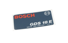 Strona główna » BOSCH » GDS 18 E » Bosch Tabliczka Naklejana Numer katalogowy 3601110365