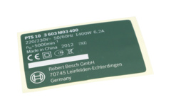 Strona główna » BOSCH » PTS 10 T » Bosch Tabliczka Znamionowa Numer katalogowy 1619PA3188